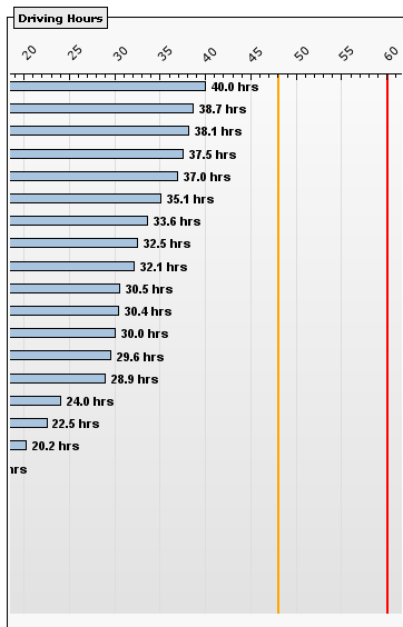 Driver Utilisation reports show you a breakdown of how many hours each driver has driven, as well as an average across all of your sites. This can allow you to see if anyone may be approaching their limit of drive time, or who has the most time available.
